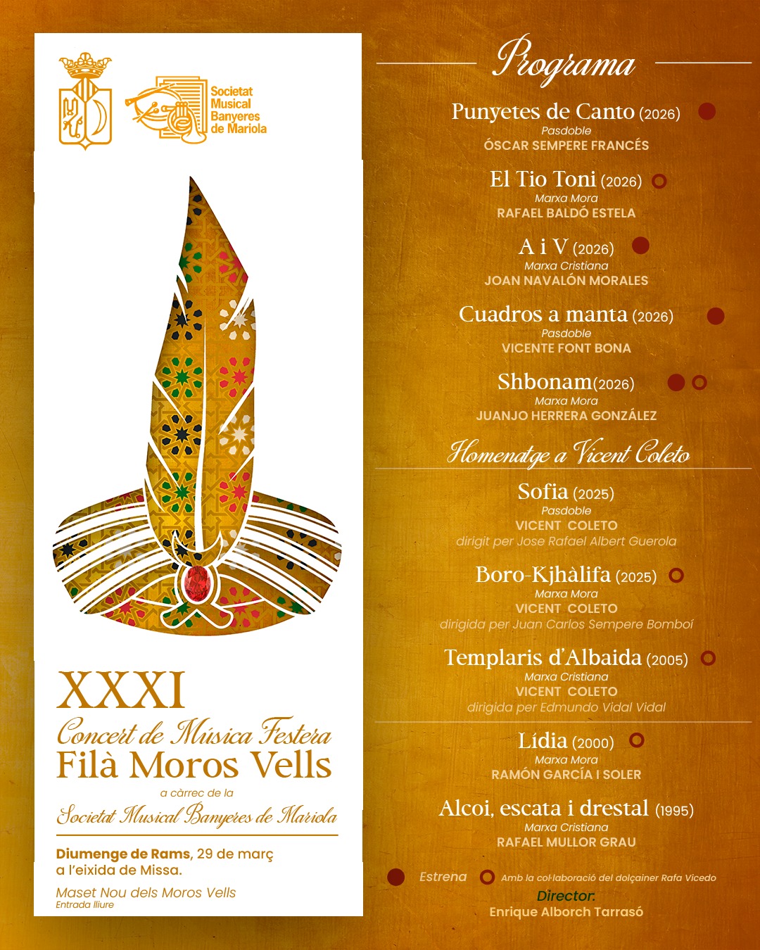 Concert Diumenge de Rams als Moros Vells 2026 Autor de l'entrada:Nacho Alonso Entrada publicada:23 març, 2026 Categoria de l'entrada:Notícies També us pot agradar S’obri el termini de matrícula per al curs 2020-21. 29 juny, 2020 Enrique Alborch Tarrasó, nou director de la SMBM 6 novembre, 2021 Loteria de Nadal al local d’assajos Carrer Laporta, 103 2 desembre, 2021